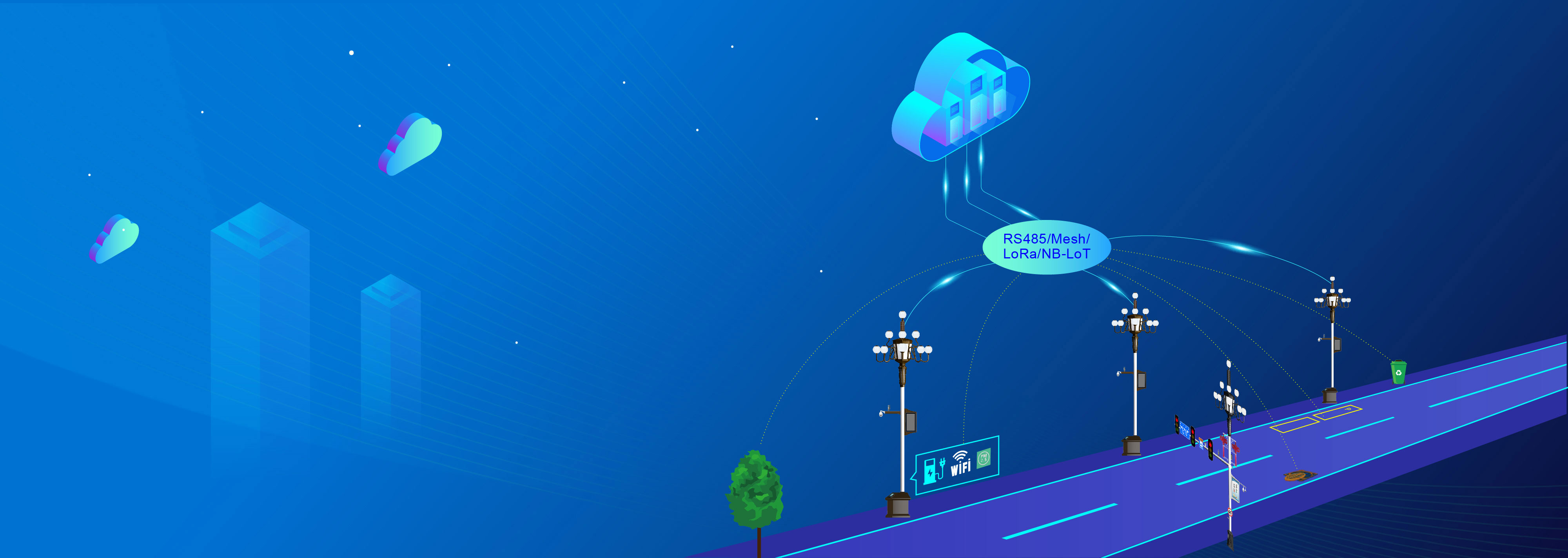 采用IPv6+MESH的无线组网控制技术进行照明控制,多链路更放心,可自愈更可靠;每盏路灯配备单灯控制器,可实现远程控制,按需照明,节能70%,亮度提升10%,节省管理维护成本40%。