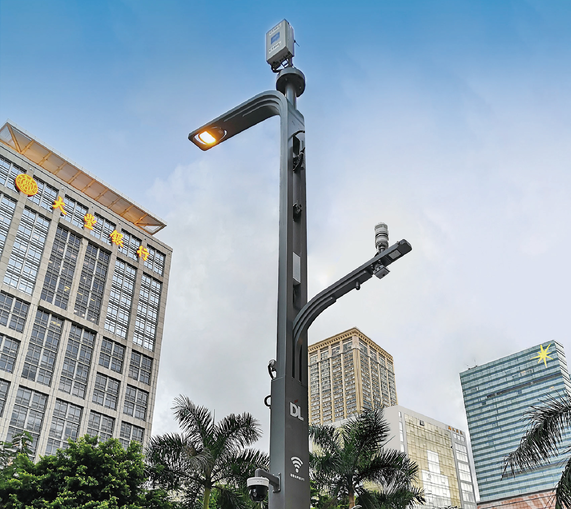 荣文多功能智慧灯杆可根据各城市文化特色进行定制,采用符合城市内涵的造象,提升城市景观形象。
